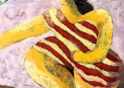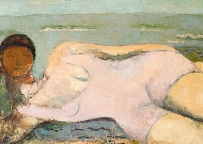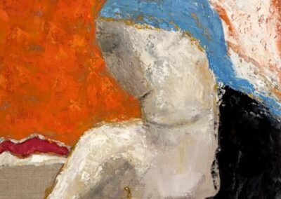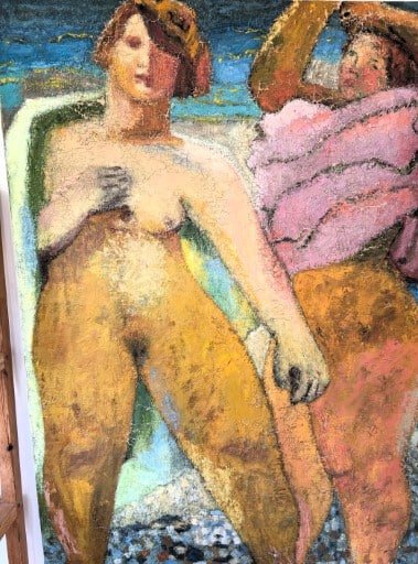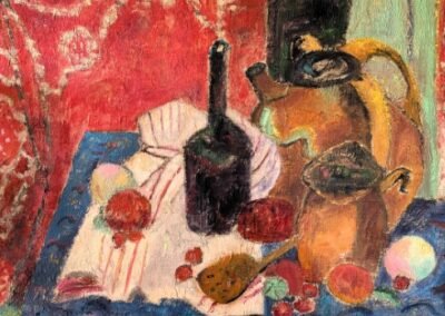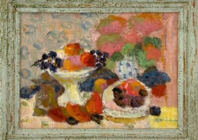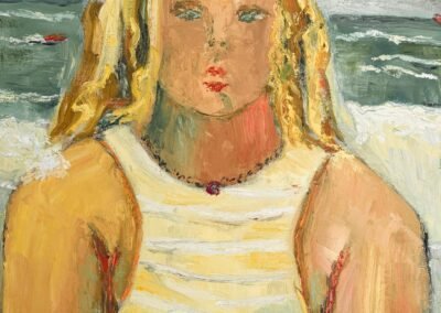 Dans chaque pièce de la maison, des tableaux d’Astrid Blanchard, mère d’Yves Blanchard, ornent les murs. Astrid étant d’origine allemande, elle apporte sa touche germanique avec un style style figuratif et coloré.